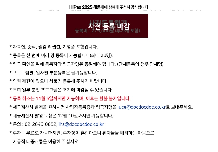 이름 영문이름(수료증 표기용) 소속 (기관) 직책 (자세히) E-Mail 연락처 (핸드폰) Workshop 1 선택Class 선택 ( 필 수 )Class1 - 우리, 삐딱하게 선을 넘자! part 1Class2 - [Hospital 4.0] 지속 가능한 병원 : 디지털 트랜스포메이션 & ESG, part 1Class3 - Why? Why? Why? 질문을 통해 답을 찾는 환자중심 서비스디자인Class4 - 간담회 - 이왕준 이사장에게 묻는다 Workshop 2 선택 Class 선택 ( 필 수 ) Class1 - 우리, 삐딱하게 선을 넘자! part 2Class2 - [Hospital 4.0] 지속 가능한 병원 : 디지털 트랜스포메이션 & ESG part 2Class3 - 일상을 여행처럼, 인생은 관광객 모드로 * 추가 인원을 등록하실 경우 확인을 위해,제일 첫번째 등록인 이름과 무통장입금 시 [보내시는 분] 이름을 동일하게 기입해주세요. * 인원에 해당하는 총 등록비를 입금하시면, 익일 오전 확인 문자를 드립니다. * 등록비 확인과 행사 당일 확인 절차를 위해 정확한 정보기입 부탁드립니다.